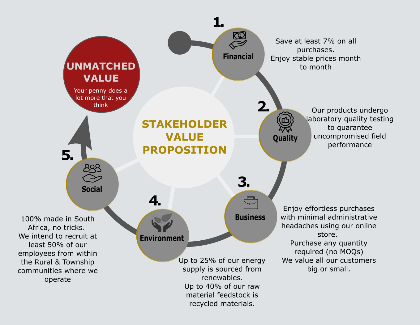 We are dedicated to the movement of rural and township industrialization. Our operations are designed to be in synergy with concepts of circular economies, green manufacturing and environmental sustainability.