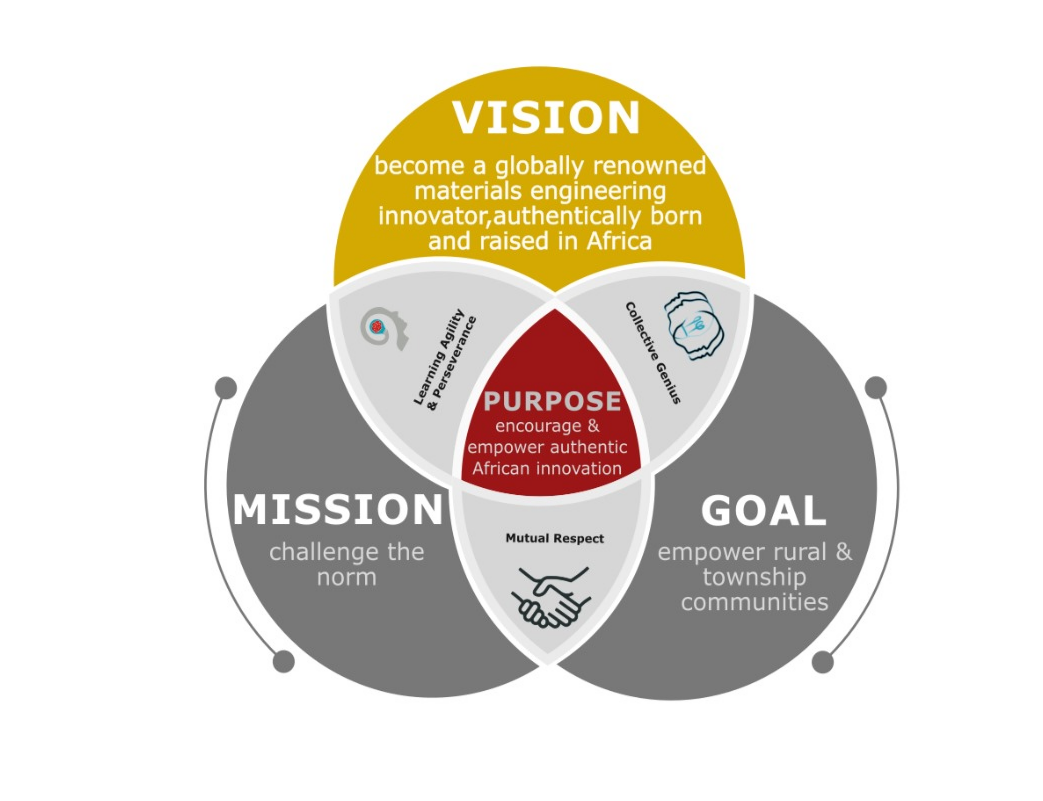 Our logo signifies a bright and golden future for African innovation. This is demonstrated by a gemstone (light source) encapsulated within a mechanical gear shaped like a light bulb.